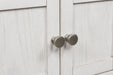 • Antiqued white finish with wood grain texture